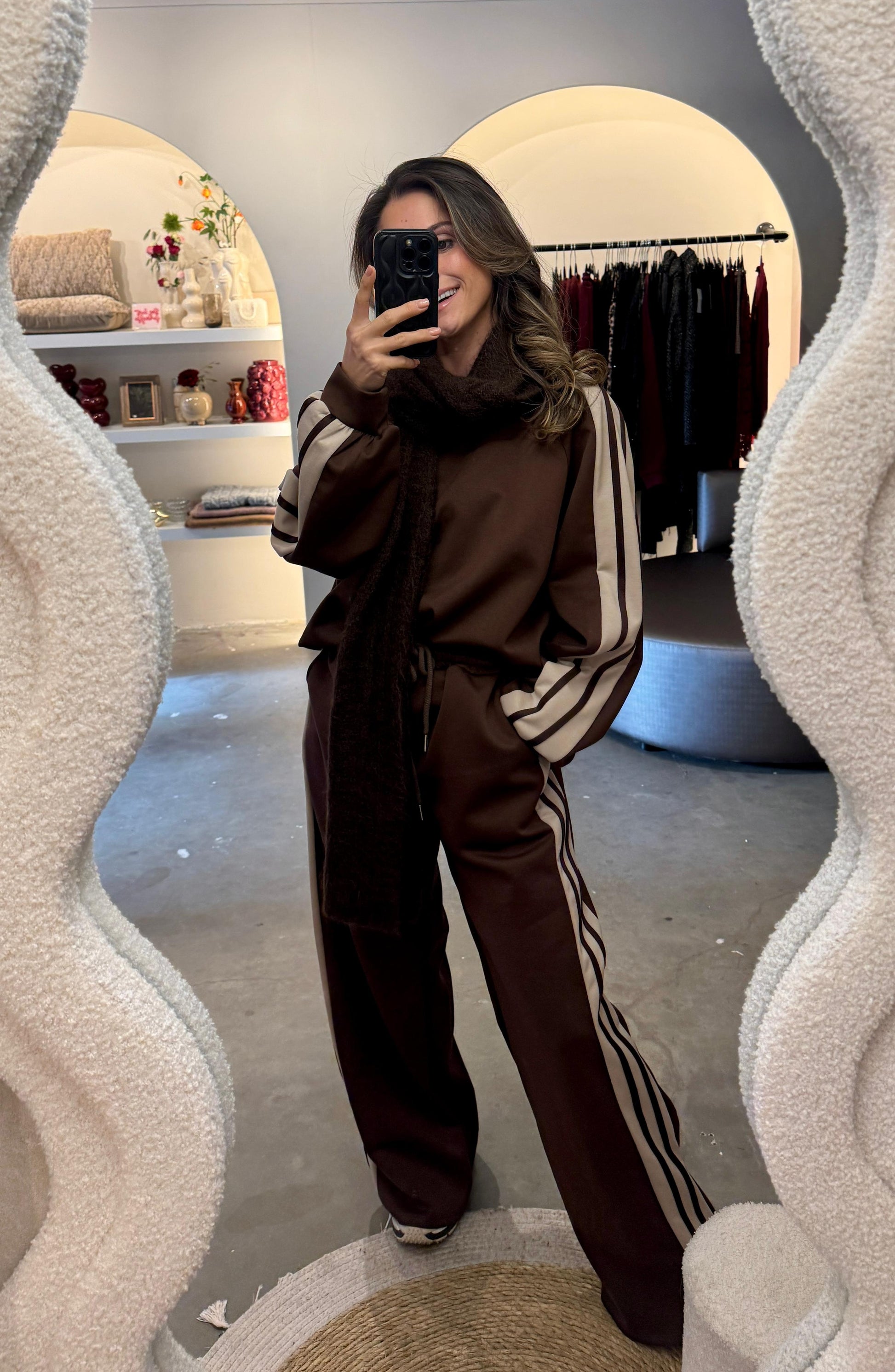Deze Ari Track Set bestaat uit een sweater met bijpassende wide jogger pants met strepen detail. De broek heeft een loose fit met witte streep aan de zijkant en valt relaxed zonder vorm te verliezen.