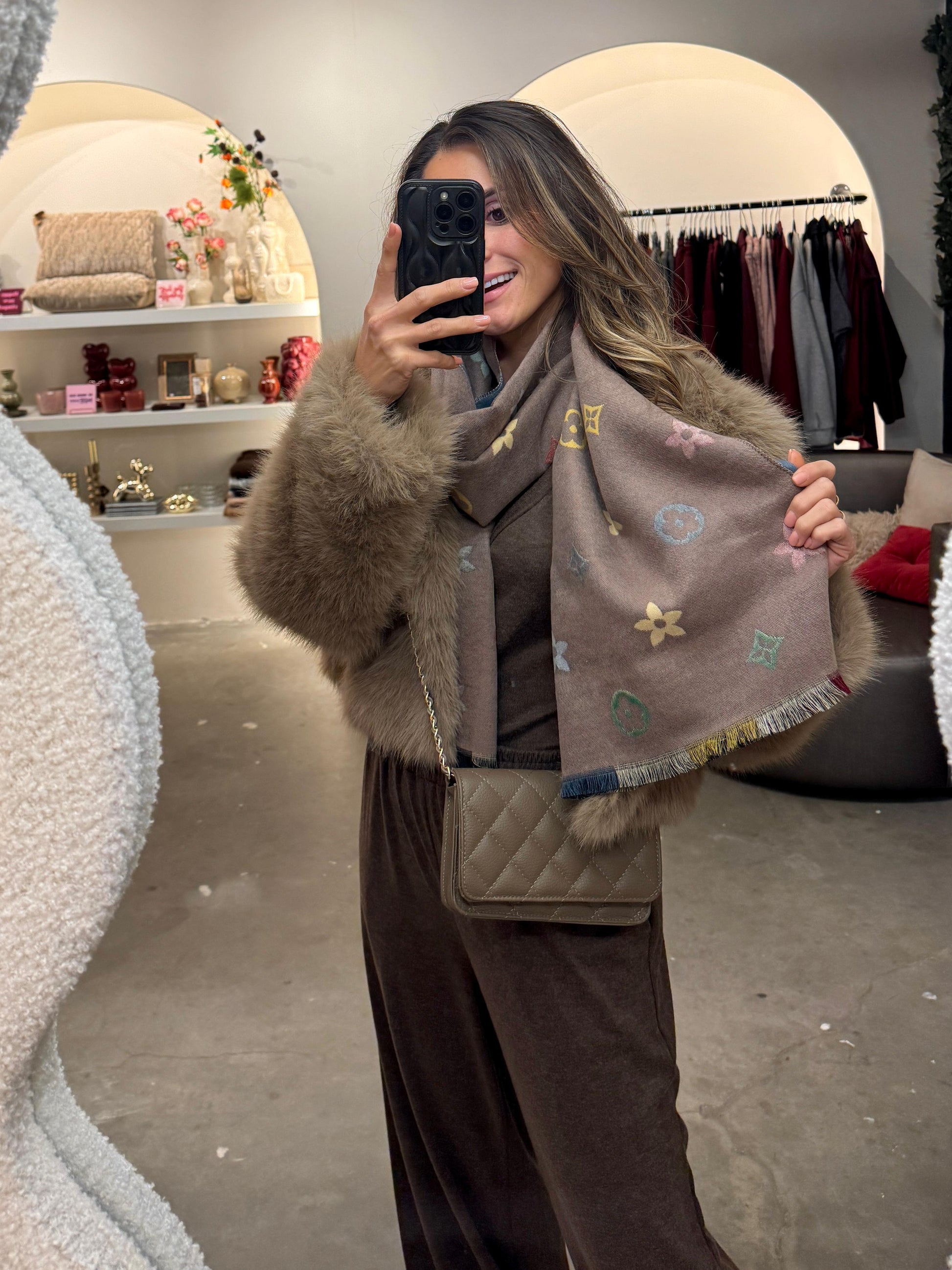 De Marais Monogram Sjaal in taupe heeft een ultra zachte cashmere touch feel, waardoor hij warm, licht en comfortabel aanvoelt.