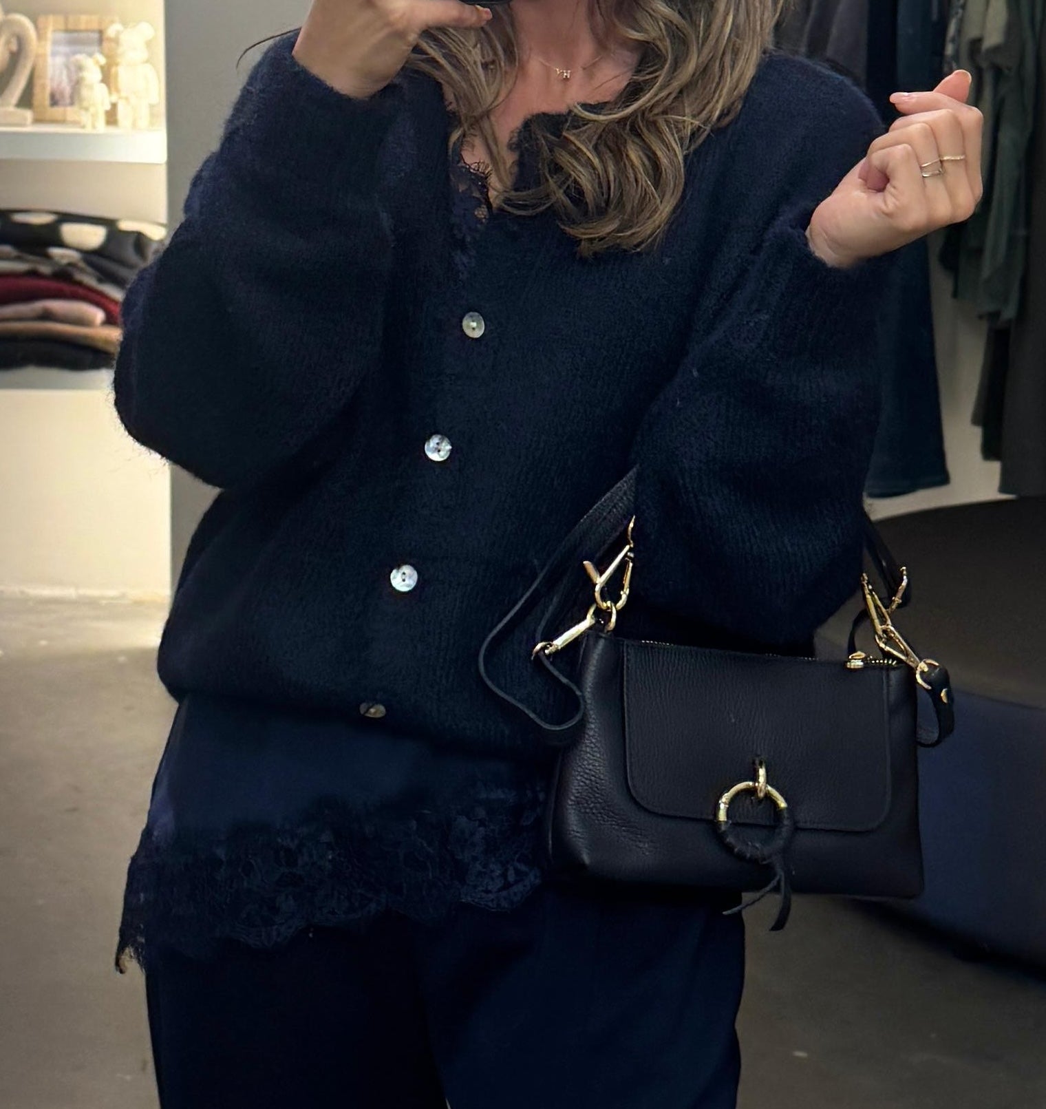 De Serille Lace Top in crème beige, bordeaux rood, roestbruin, donkerblauw en zwart is een verfijnde basislaag met een zachte uitstraling.